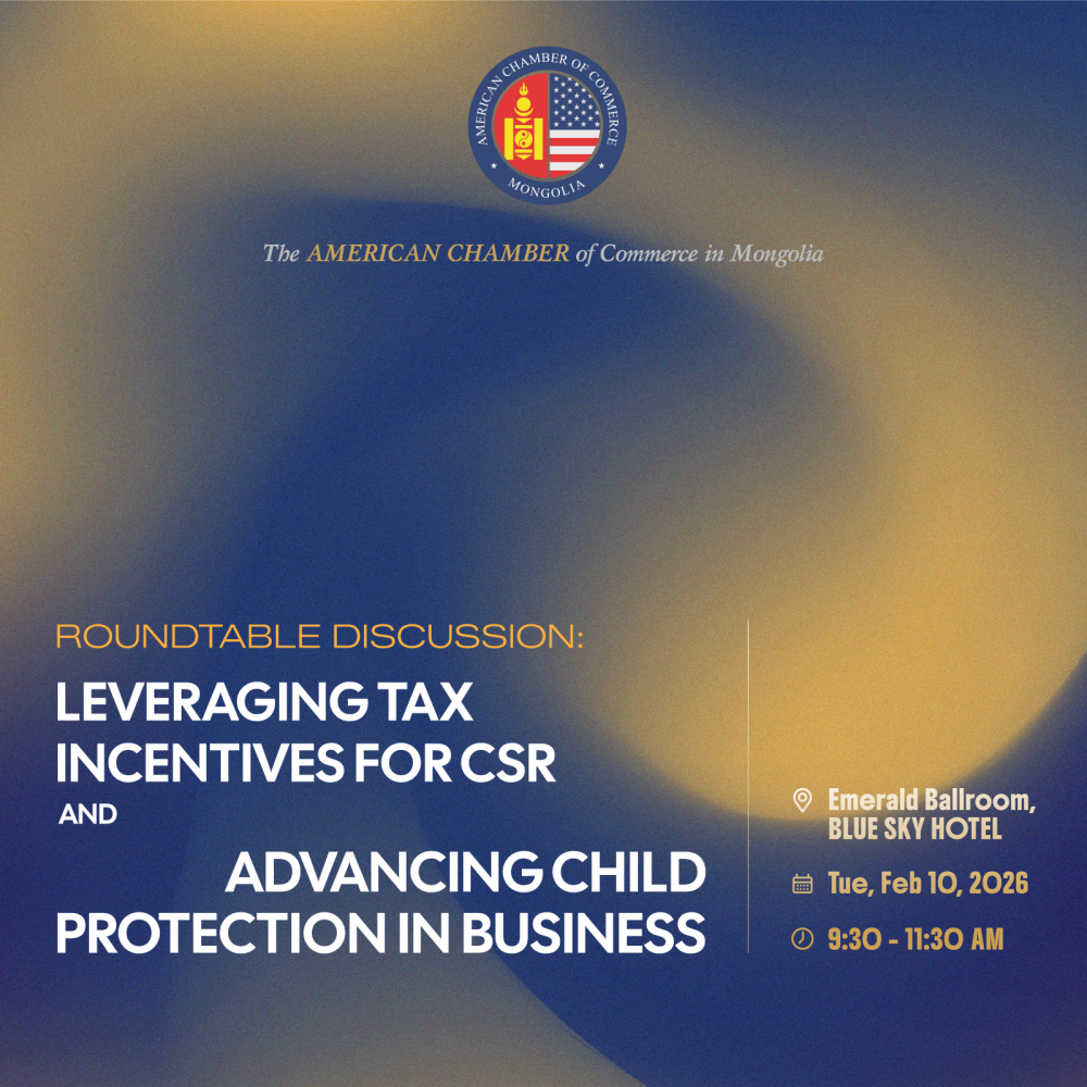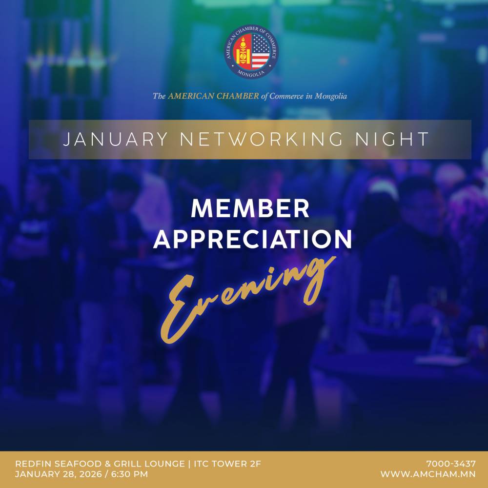 AmCham Mongolia cordially invites you to attend the Annual General Meeting (AGM) 2025 — a highly important gathering for all members and key stakeholders. Join us as we review the milestones and achievements of 2025, reflect on the Chamber’s ongoing initiatives, and collectively shape AmCham’s strategic direction and priorities for 2026. Your participation and insights are vital in determining our shared path forward. [...]