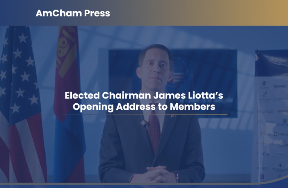 AmCham Mongolia’s newly elected Chairman of the Board, Mr. James Liotta, delivers opening address on building a High-Trust Economy.